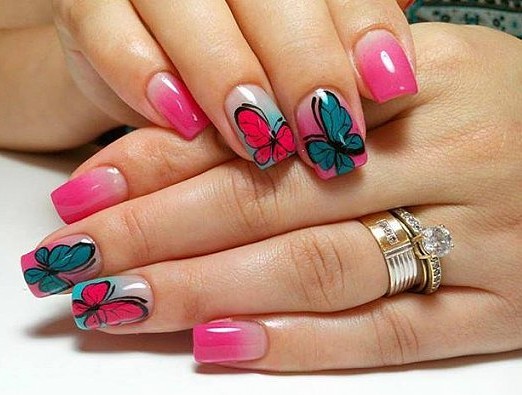 This Ombre look nail trick with butterflies on the two middle fingers are looking breathtaking. The Ombre is perfectly done.